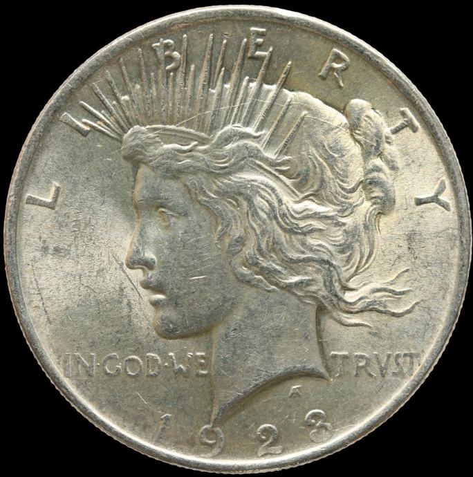 LaZooRo: Združene države Amerike 1 Peace Dollar 1923 UNC tiara počena matrica - srebro