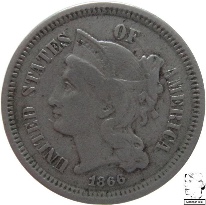 LaZooRo: Združene Države Amerike 3 Cents 1866 XF inkuz, počena matrica