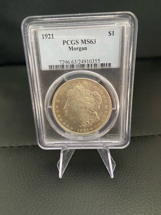 Prodaja se Morgan silver dollar v PCGS ovitku ocenjen MS63