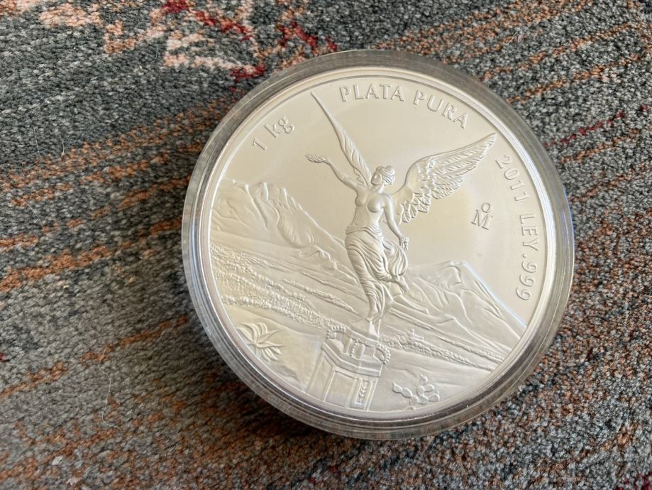 Eden najlepših, (če ne že najlepši:) naložbenih srebrnikov (naložbeno srebro 999/1000 ) Mehiški Libertad 1 kg, v originalni kapsuli, neodprt, brezhiben.