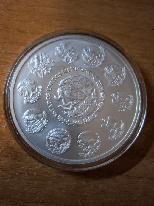 Prodam 5 unčni srebrni kovanec iz Meksika letnik 2019, čistost srebra 0,999. Cena 423€. Kovanec je v kapsuli... Tel. 041 336 861
