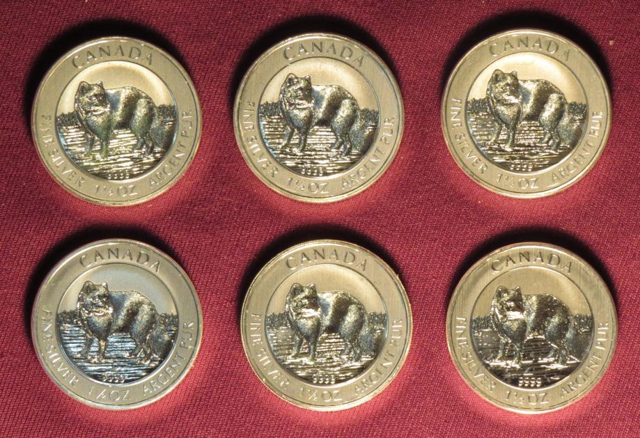Prodam 6 kanadskih srebrnikov teže 1.5 oz. Arctic Fox