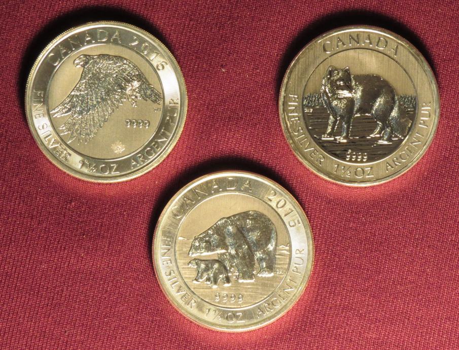 Prodam komplet treh kanadskih srebrnikov teže 1.5 oz. Arctic Fox, Polar Bear, Snow Falcon