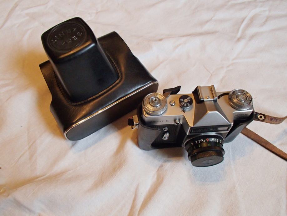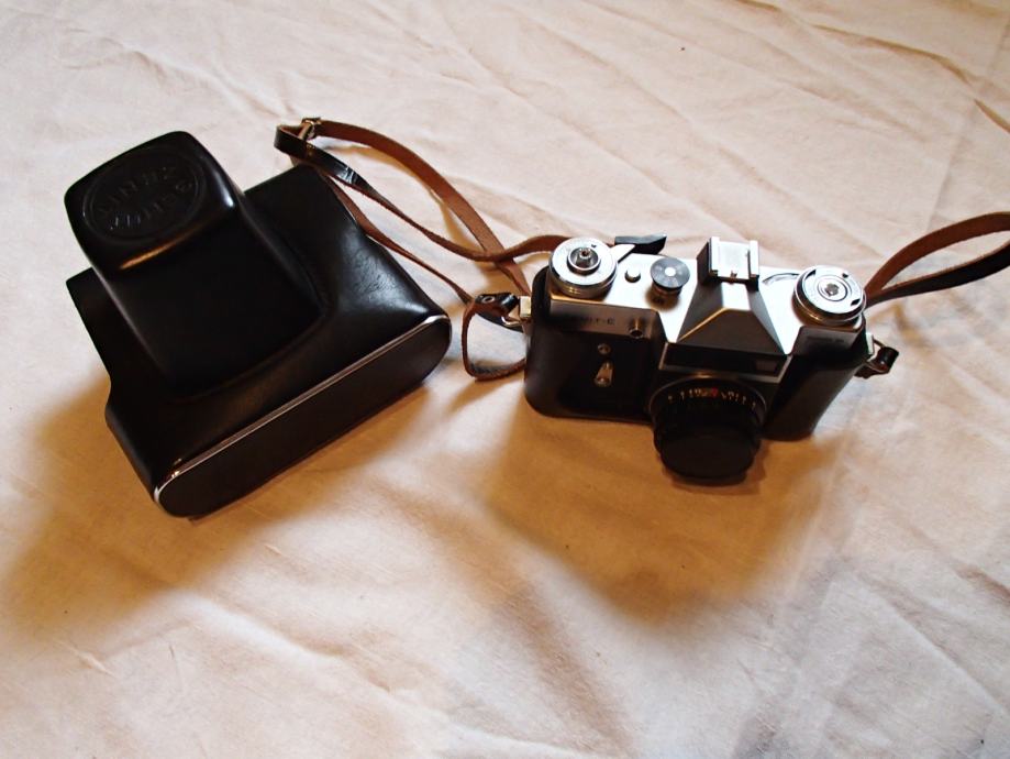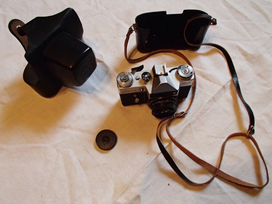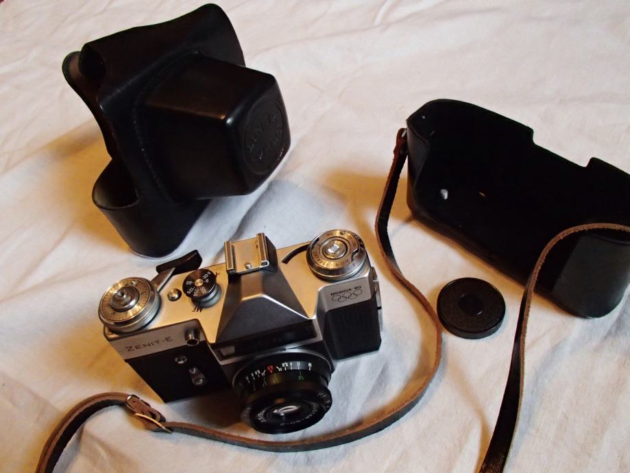 Prodam fotoaparat ZENIT-E, letnik cca. 1978, proizveden v Sovjetski zvezi. Na aparatu je tudi logo olimpijskih iger v Moskvi. Aparat je zelo dobro ohranjen, uporabljen samo za en film. V kompletu sta še dve torbici. Cena aparata je 60 €.
