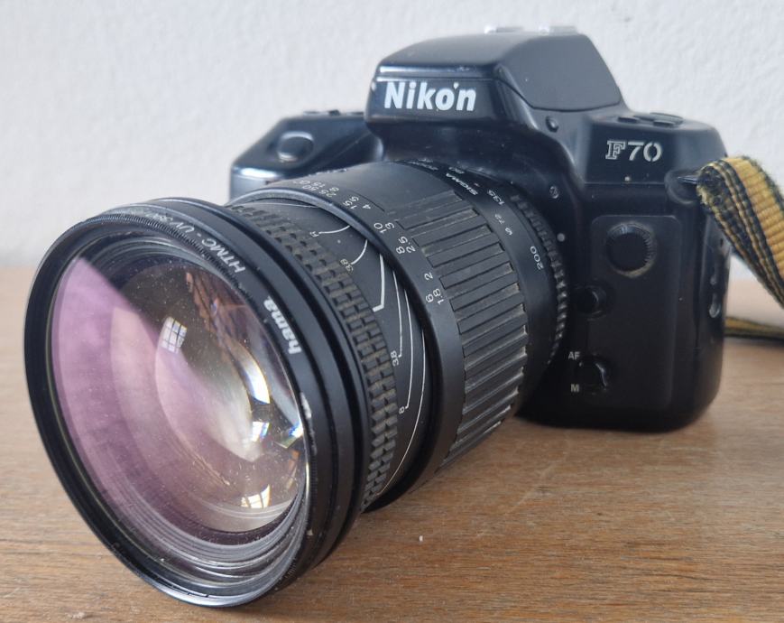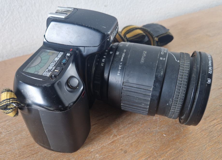 Prodam solidno ohranjen analogni fotoaparat Nikon F 70, Sigma zoom objektiv 28-200mm /f 3,8-5,6 , UV filter