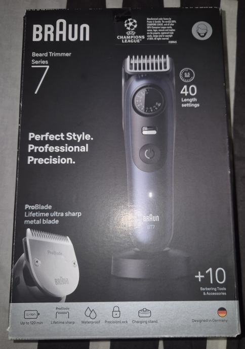 Prodajam Braun BT7540 iz serije 7 – uporabljen samo 1x, ne ustreza mi osebno. Naprava je v popolnem stanju, v originalni embalaži, z vsemi pripadajočimi nastavki in dodatki.