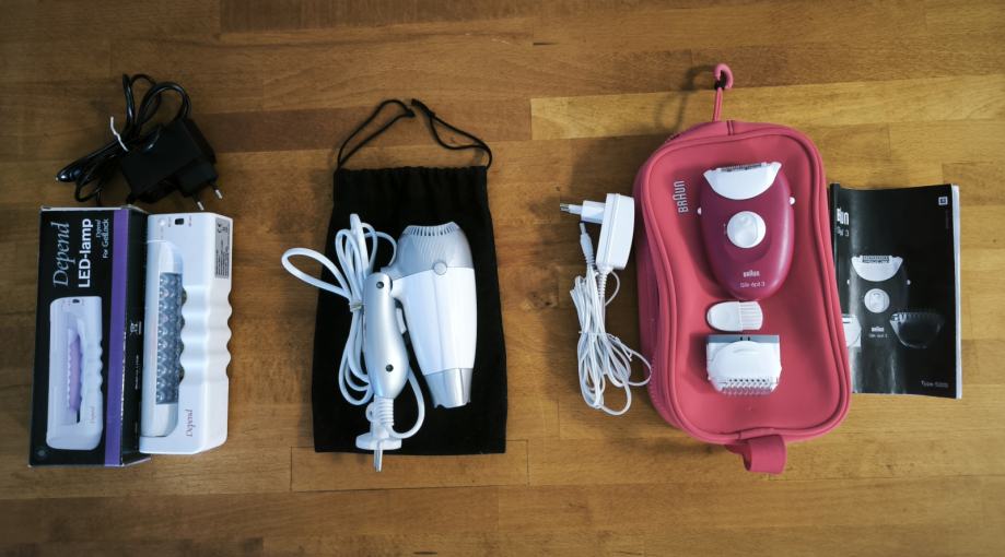 Lučka za geliranje nohtov, zložljiv sušilec las, brivnik in depilator
