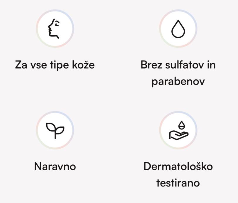 Prvi, certificiran 99,5 % naravni čistilni gel, zasnovan posebej za čiščenje obraza s sonično napravico. Ovseni proteini naredijo na koži zaščitni sloj, aktivne sestavine pa na koži puščajo mehak in prijeten občutek čistoče ter je ne izsušujejo. Brez mil, veganski in dermatološko testiran.
