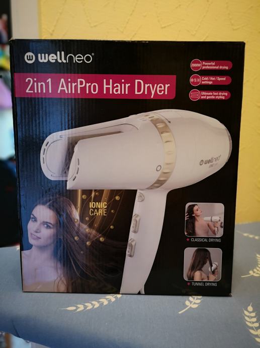 Prodam izredno dobro ohranjen sušilnik za lase znamke Wellneo. Star je približno 1 leto. Njegova posebnost je, da ima 2 možnosti sušenja - normalno sušenje ali sušenje + ravnanje las. Možnost sušenja lahko spremenite tako, da sušilni del zavrtite v smeri urinega kazalca, da ga poravnate vertikalno. Zaradi te dodatne funkcije je posledično izjemno priročen za vse ženske, ki bi si rade hitro uredile pričesko. Ravnanje las je tako zaradi veliko manjše temperature manj škodljivo za lase. Zaradi praktičnosti in hitrega sušenja ga toplo priporočam.