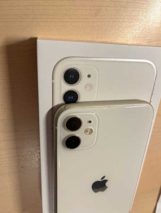 Prodam zelo lepo ohranjen dve leti star, bel iPhone 11, 64 GB, kupljen v Sloveniji na Mimovrste 23.11.2022. Ekran brez prask. Stanje baterije 84%.