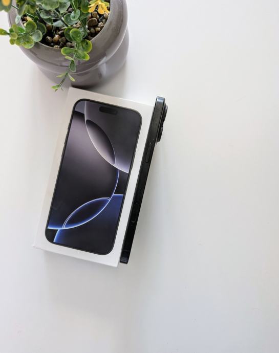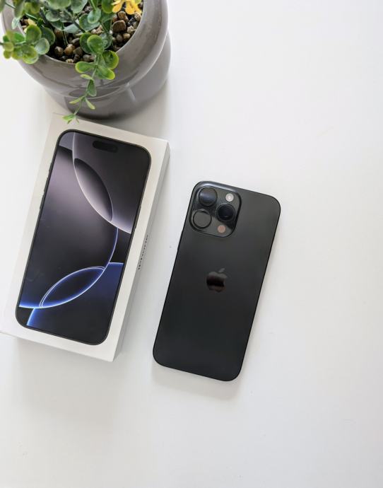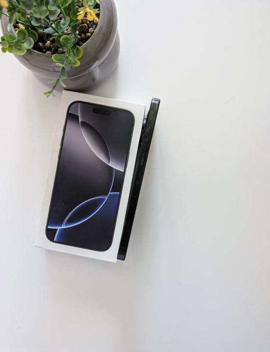 Apple iPhone 16 Pro Max (256GB) - Black Titanium Rabljen Kot nov, brez znaka uporabe, zraven vsa pripadajoča oprema, garancija velja do 9.5.2026. Battery health 100%.