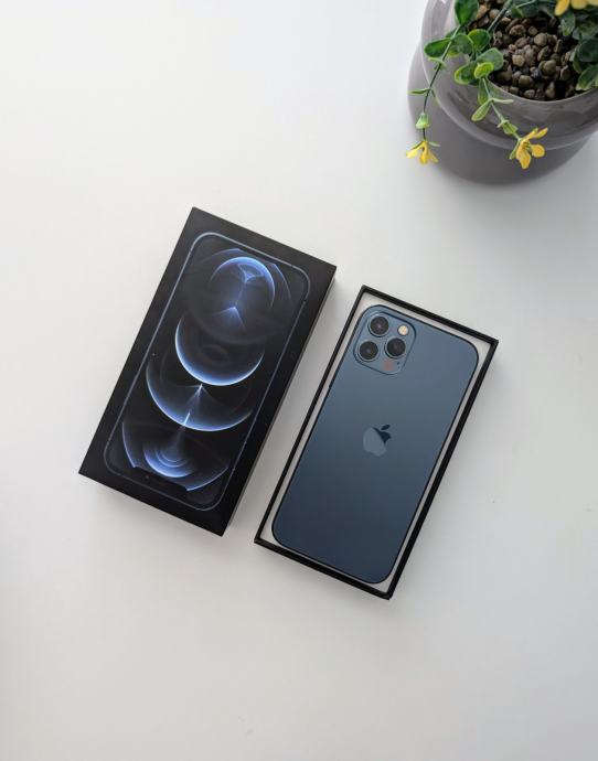 Apple iPhone 12 Pro 128GB - Pacific Blue RABLJEN, Mobilni telefon je kot nov, zdravje baterije 81%, vsebuje vso pripadajočo opremo, deluje na vsa omrežja in NI vezan na naročniško razmerje ali operaterja.