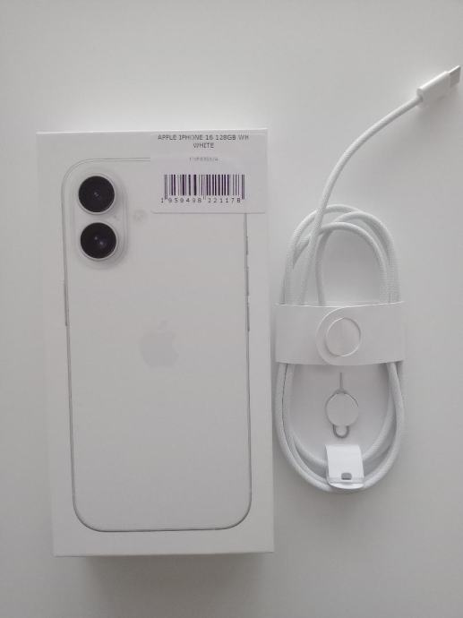 Prodam APPLE iPhone 16 128 GB, beli. Z ovitkom. Še nerabljen.
