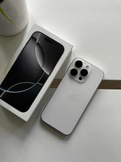 Mobilni telefon Apple iPhone 16 Pro (256GB) – White Titanium Rabljen je odlično ohranjen brez znaka uporabe, vsa original embalaža je priložena. Garancija potekla. BH je 92%.