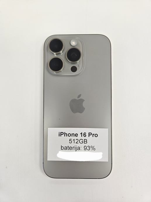 Apple iPhone 16 Pro 512GB Silver, RABLJEN telefon, baterija 93%