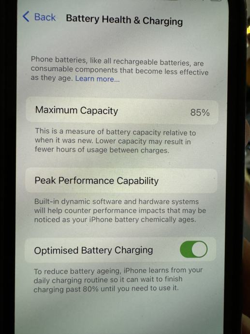 Zdravlje baterije je 85%, prodam s škatlo in original silikonskim ovitkom črne barve.