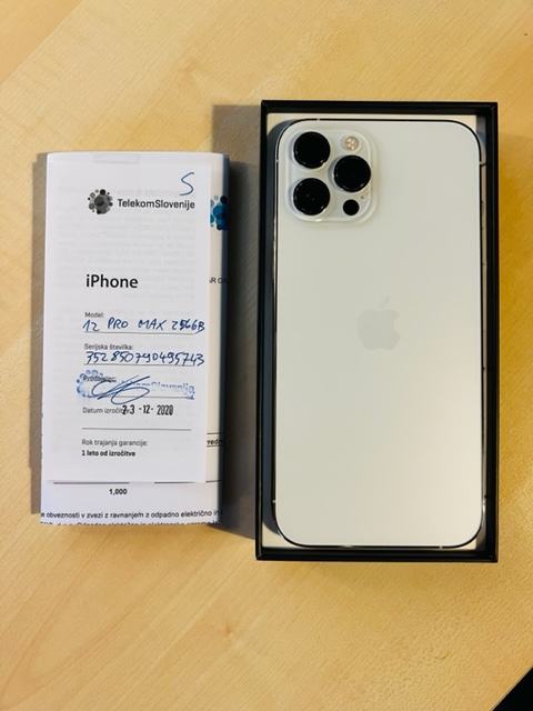 Prodam odlično ohranjen iPhone 12 Pro Max 256GB Silver. Kupljen decembra 2020. Telefon je bil vedno nošen v ovitku z zaščitnim steklom.