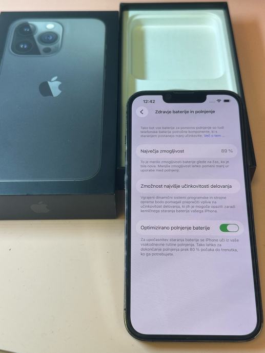 Prodam iPhone 13 Pro v graphite barvi z 128Gb prostora in pa 89% battery health-a.