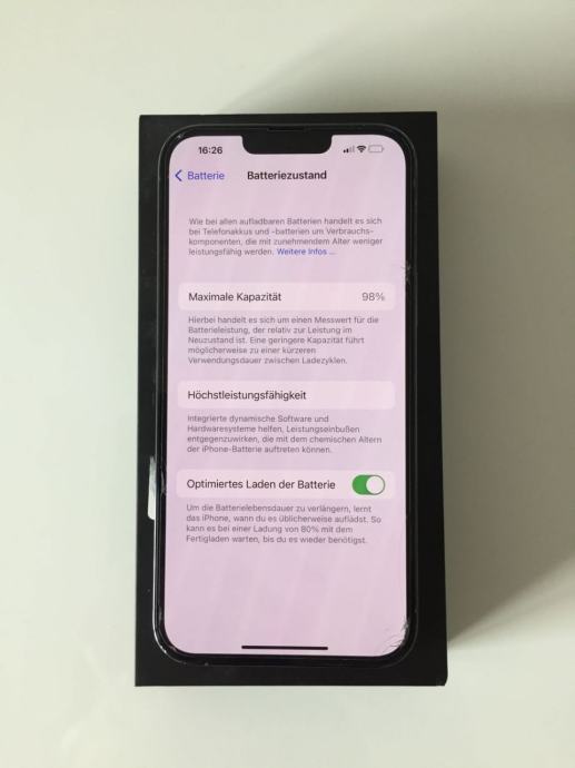 Tudi baterija je v brezhibnem stanju - največja kapaciteta 98%.