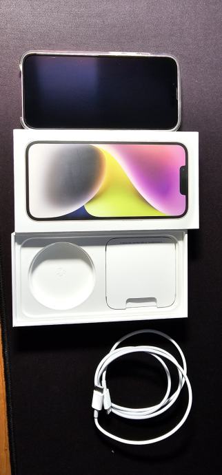 iPhone 14 – odlično ohranjen – komplet (škatla, polnilec, folija, etui