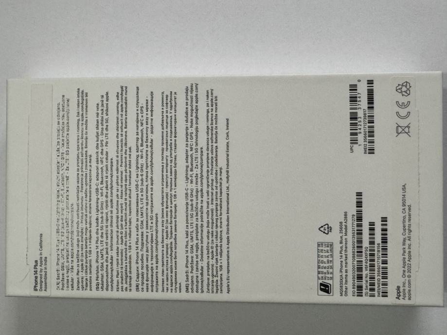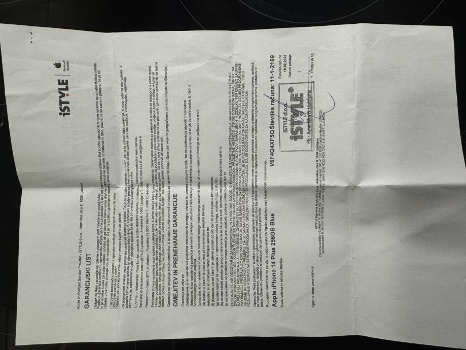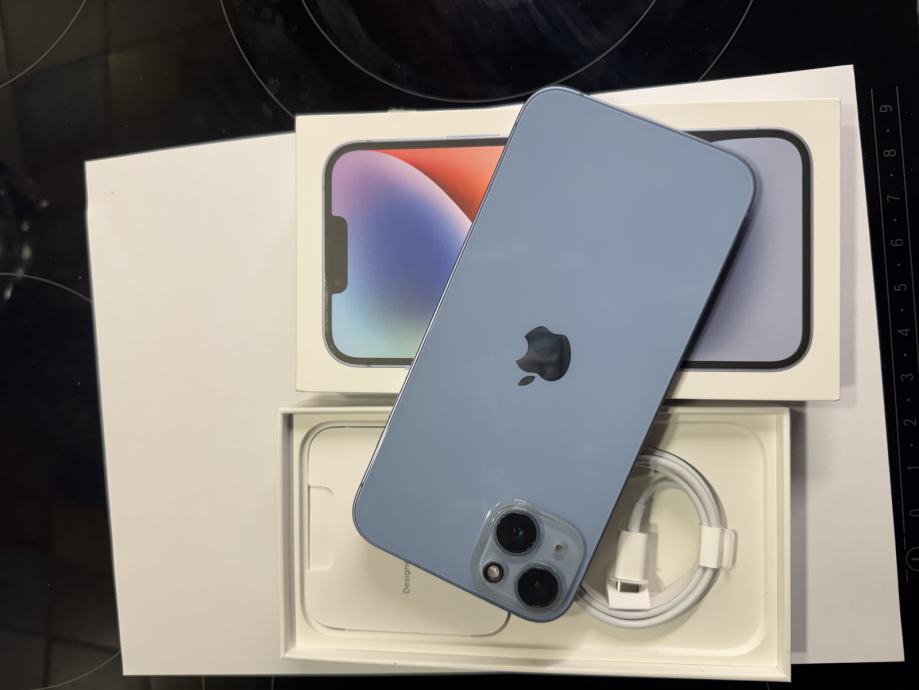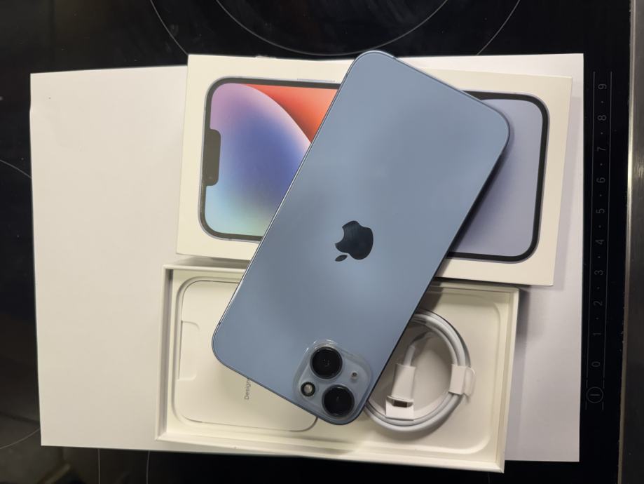 Prodamo odlično ohranjen telefon (brez prask, kot nov) Iphone 14 plus 256 gb, svetlo moder.