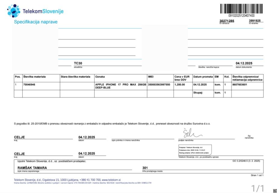 Kupljen na Telekomu dne 4.12.2025.