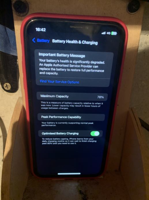 zadnja kamera in sprednji ekran sta brez prask prav tako celi telefon deluje brezhibno ima najnovejši ios 18.4.