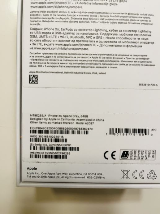 iPhone XS, 64 GB, Space Gray, rabljen a zelo dobro ohranjen, brez poškodb, prask... star 2 leti Batery health 85%, z originalno škatlo, prodam.