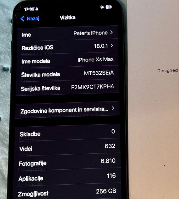 Prodam Iphone xs max, 256GB, space grey barve. Ima počeno steklo ekrana, vendar zaslon deluje normalno in se odziva na dotik kot prej. Drugače je lepo ohranjen, brez večjih sledi uporabe, saj je bil vedno nošen z zaščitnim ovitkom in steklom in je počen ekran posledica res nesrečnega padca na tla. Baterija je na 78%. Aparat je nadgrajen na najnovejši ios 18.3.Pakiranje v originalni embalaži skupaj z polnilcem.Zraven dodam kar precej različnih zaščitnih ovitkov ter 3 zaščitna stekla.