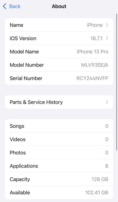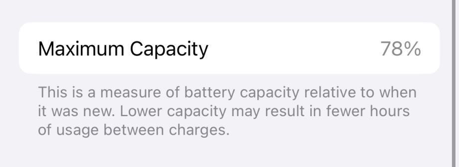 Telefon deluje brezhibno, brez težav pri uporabi. Zdravje baterije je 78 %. Naprava je dobro ohranjena, edina pomanjkljivost je počena kamera, ki pa ne vpliva na kakovost fotografij ali delovanje kamere. Telefon je posodobljen na IOS 26.2.