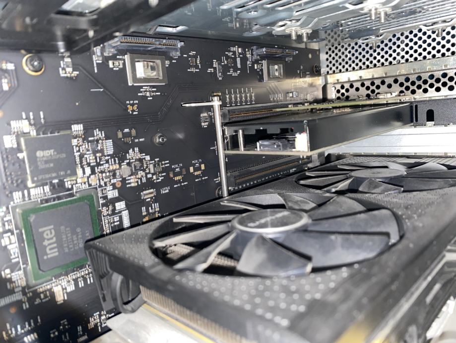 - POZOR: prednja dva USB2.0 vtiča ne delujeta! Zato je bila v sistem dodana kartica z dvema USB-C priključkoma USB3.1, proizvajalca SONNET, ki je bila v času nadgradnje najbolj kompatibilna s sistemom.
