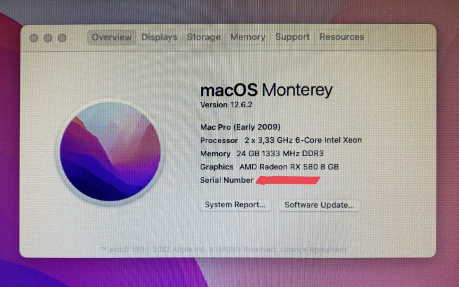 Trenutno je na njem s pomočjo OpenCore prilagoditev nameščen MacOS Monterey 12.6.2. Najverjetneje bi se nanj tako lahko instaliralo novejšo verzijo MacOS sistema, a se s tem nisem ukvarjal zaradi prehoda na nov prenosnik.