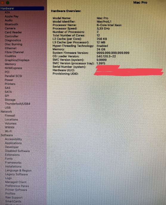 Računalnik je bil kupljen kot MacPro 4,1, ki pa je bil zavoljo možnosti nadgradnje strojne opreme in operacijskega sistema dvignjen na verzijo 5,1.