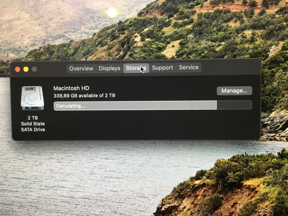 Specifikacije vidne na fotografiji; računalnik je bil močno nadgrajen ob nakupu, kasneje pa vgrajen še 2 TB SSD za več prostora in hitrejši disk.