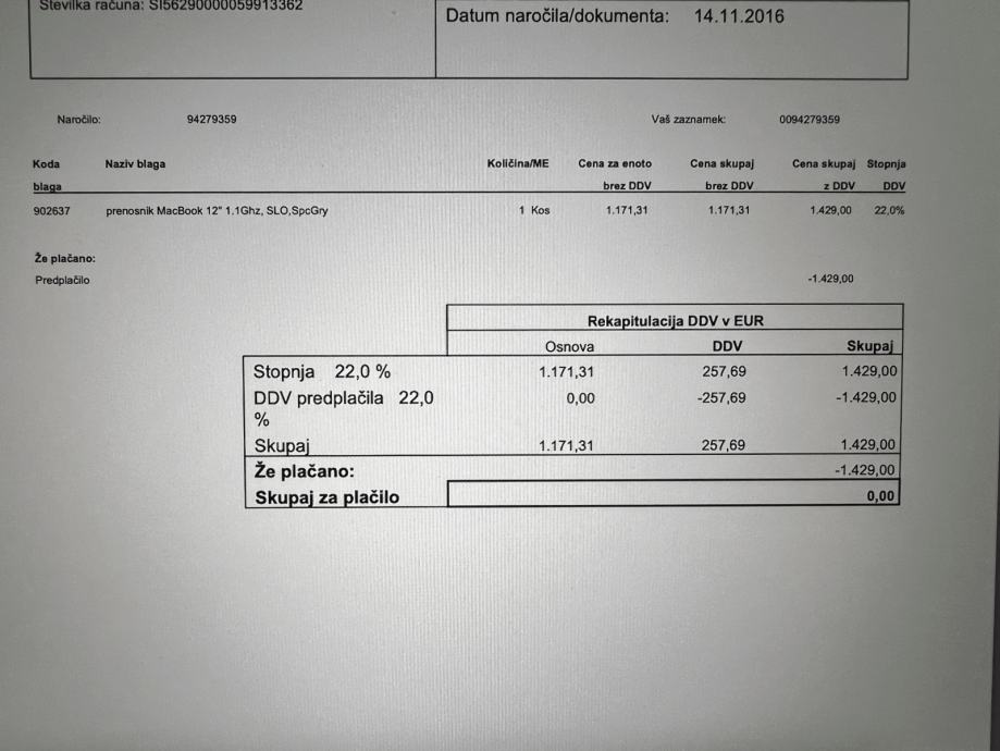 Gre za laptop iz naslednje povezave: https://www.mimovrste.com/prenosniki/apple-prenosnik-macbook-12-11ghz-dual-core-intel-core-m-256gb-space-grey.