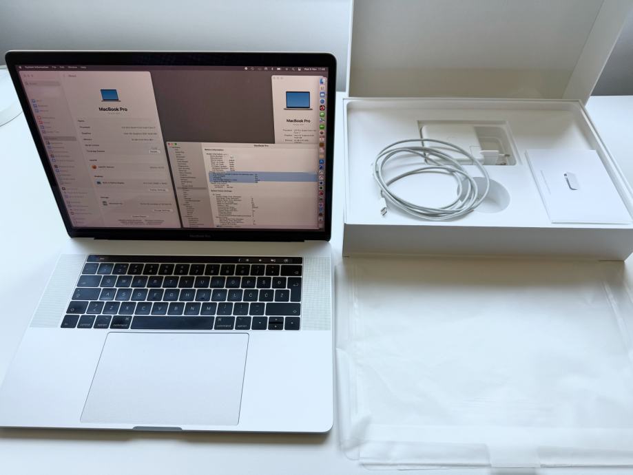 Prodam Apple MacBook Pro 15" / 15,4-inch / sept. 2017 / Retina Display (2880x1800) / 2,8 GHz Quad-Core Intel Core i7 / 250 GB / Intel HP Graphics 630 1536 MB / 16 GB 2133 MHz LPDDR3 / macOS Ventura 13.7.8 / SLO tipkovnica / prvi lastnik / srebrn / zelo malo rabljen baterija 83 ciklov / napajalnik / original embalaža / prodaja zaradi nakupa novega prenosnika