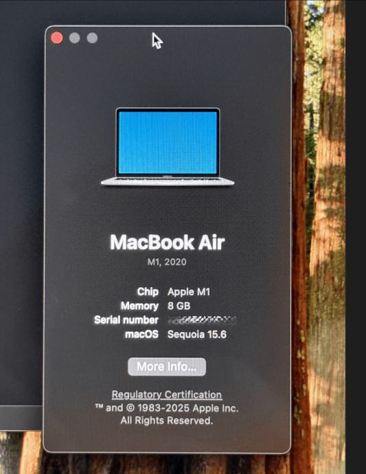 Prodam odlično ohranjen MacBook Air M1 z 8GB pomnilnika in 256GB diskom. Posodobljen na najnovejšo različico macOS in z zelo dobro ohranjeno baterijo (samo 100 ciklov, kot je razvidno iz slike). Prodajam zaradi nadgradnje.