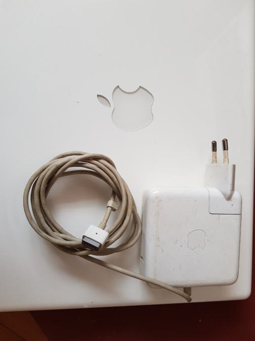 Prenosnik je delujoč nima pa trdega diska. Baterija ni več dobra. Napajalnik je zraven , original Apple in je se dober. Ohisje tudi solidno, nic poškodb.