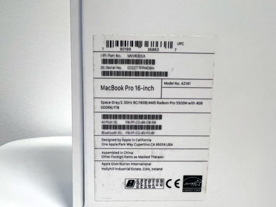 MacBook Pro 16-inch, touchbar, 2,3 GHz Intel Core i9, 16GB DDR4, 1TB