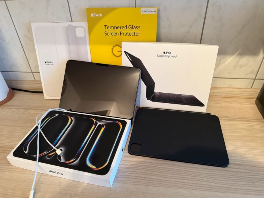 Prodam iPad Pro Cellular 2024 M4. Je v odličnem stanju in ima naneseno zaščito zaslona v obliki kaljenega stekla (še ena je v kompletu).. 100% baterija. Račun je na voljo. iPad je opremljen z originalnim Apple ovitkom v beli barvi.