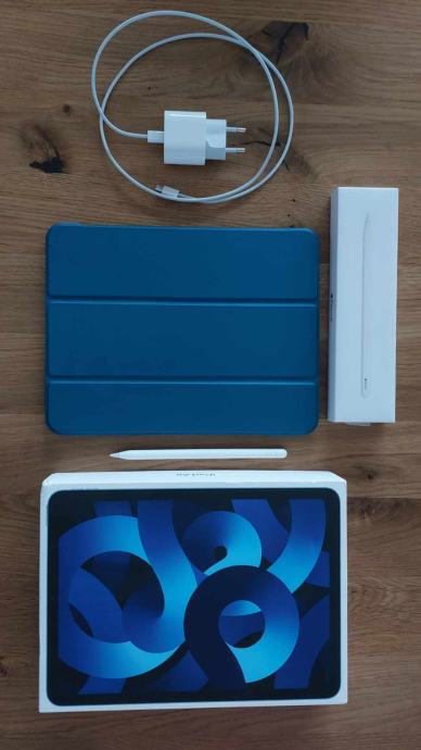Zaradi neuporabe prodamo odlično ohranjen Ipad Air 5. Generacije (letnik 2022) Wi-Fi, 64GB, modre barve. Ipad je kupljen oktobra 2024 in še ima veljavno garancijo do oktobra 2025.Ipad ima na zaslon pritrjeno zaščitno steklo, enega vam še priložimo.V ceno je vključen tudi Apple Pencil 2. Generacije in JETech ovitek.
