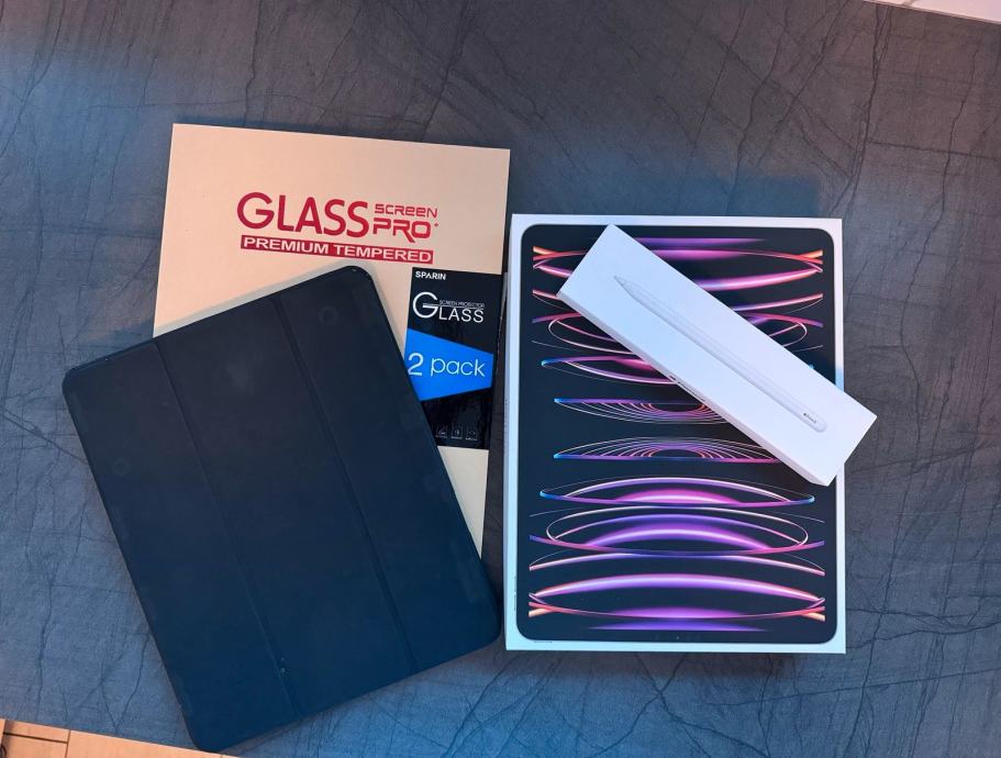 Od nakupa je imel zaščitno steklo na zaslonu in je bil vedno v ohišju. Na voljo je z zaščitnim steklom, ohišjem in svinčnikom Apple Pencil 2. generacije.