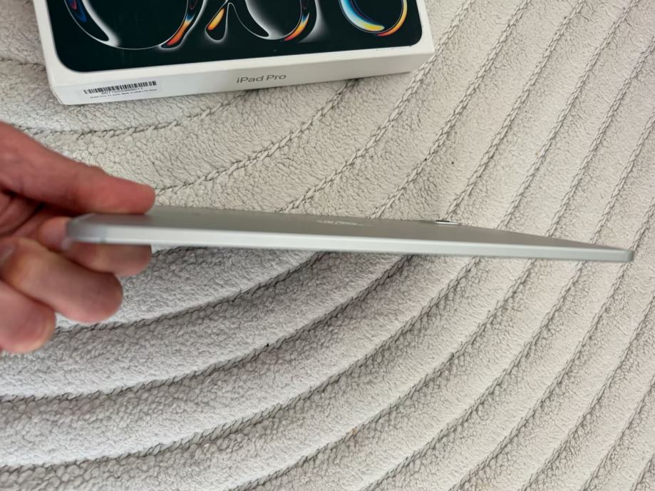 Prodajam svoj iPad Pro M4 z 11-palčnim zaslonom in 512 GB pomnilnika v elegantni srebrni barvi. Naprava je bila uporabljena zelo malo in z veliko skrbnostjo, zato izgleda in deluje kot nova. Ni prask ali znakov uporabe, tehnično in vizualno je v popolnem stanju. Kupljen je bil marca 2025 in je še vedno v veljavnem proizvajalčevem jamstvu. Baterija je na 100 %, se hitro polni in odlično drži energijo. V kompletu so iPad Pro M4, originalna embalaža in račun.