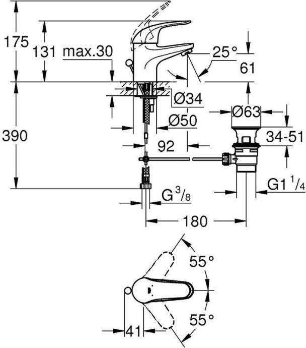 Armatura za umivalnik Grohe Swift je udobna armatura za umivalnik standardne višine in primerna za vgradnjo v umivalnik v vaši kopalnici ali WC za goste. Poleg sodobne oblike nudi armatura številne funkcije. Z vgrajeno vlečno paličico lahko elegantno zapirate in odpirate odtočni čep. Poleg tega je armatura za umivalnik je primerna tudi za pretočne grelnike vode.Gladko upravljanje zahvaljujoč Grohe SilkMove®S tehnologijo SilkMove® lahko brezstopenjsko in izjemno natančno nastavljate temperaturo in količino vode. Kakovostna notranjost je izdelana iz keramike in je zato nadvse trpežna. Keramični vložek omogoča zelo preprosto upravljanje enoročne mešalne baterije.Grohe StarLight® Krom za preprosto negoKromirana površina StarLight® omogoča preprosto nego. Armaturo preprosto obrišete s suho krpo. Gladka površina zagotavlja sijoč rezultat in je poleg tega zelo odporna. Poleg nanosa kroma zagotavlja po posebnem visokotehnološkem postopku oplemenitena barva trikratno trdoto površine in desetkrat večjo odpornost na praske kot običajni krom. Zaradi tega je pipa še zlasti trpežna, površina pa se sveti tudi po nekaj letih.Sistem hitre pričvrstitve QuickFix®Sistem hitre pričvrstitve Grohe QuickFix® omogoča hitro namestitev. Gibke priključne cevi vam še dodatno pomagajo pritrditi novo mešalno baterijo na umivalnik.