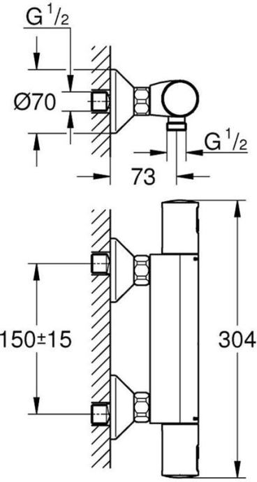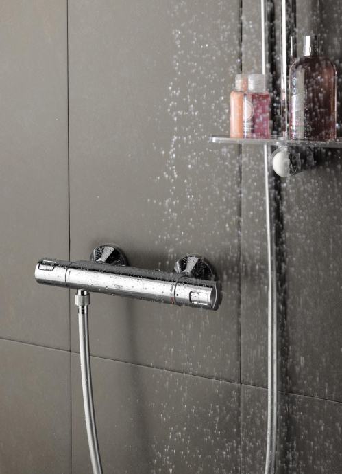 Termostatska baterija za tuS Grohe Precision Start je za nego preprosta in zanesljiva armatura za tuS za stensko namestitev. S kromirano povrSino in elegantno obliko pritegne poglede v vaSem tuSu.Enakomerna temperatura z Grohe TurboStat®Termostatska baterija za tuS je opremljena s kompaktno kartuSo z razteznim termiCnim elementom. Ta visoko natanCna tehnologija krmiljenja zagotavlja takojSnjo izenaCitev temperaturnih in tlaCnih nihanj in omogoCa prijetno konstantno temperaturo vode za tuSiranje.ZaSCita pred prevroCo vodoVarnostna funkcija Grohe SafeStop omogoCa temperaturo vode do 38 °C in varuje uporabnika, zlasti otroke pred opeklinami zaradi prevroCe vode. Nastavitev armature za tuS lahko roCno prilagodite svojim individualnim potrebam in s pritiskom tipke SafeStop doseZete tudi viSje temperature vode.EasyLogic skrbi za preprosto upravljanjeTermostatska baterija ima prikaz temperature na armaturi, ne na roCaju. Tako lahko takoj ugotovite, v katero smer morate obrniti roCaj, da doseZete Zeleno temperaturo. Grohe StarLight® krom za preprosto negoKromirana povrSina StarLight® omogoCa preprosto nego termostatske baterije. Armaturo za tuS lahko preprosto obriSete s suho krpo. Gladka povrSina zagotavlja sijoC rezultat in je poleg tega posebej trpeZna in obstojna.VarCujte z vodo z Grohe EcoJoy®Tehnologija EcoJoy® skrbi za to, da skozi armaturo teCe do 50 odstotkov manj vode - in to pri 100-odstotni zmogljivosti. Tako lahko izkoristite polni vodni tok in obenem ohranjate naravo in denar v vaSi denarnici. Z gumbom EcoButton lahko varCno odpiranje individualno nastavite.TehniCni podatki:- Stenska namestitev- Kompaktna kartuSa z razteznim termiCnim elementom- Varnostna blokada pri 38 °C- VarCna tipka z individualno nastavljivim varCnim odpiranjem- Integrirana blokada meSane vode- Izliv za tuS 180° navzdol 12,5 mm (1/2")- Integriran protipovratni ventil- Lovilna sita za umazanijo- S-prikljuCki- Kovinska rozeta- Tlak najmanj 1 bar