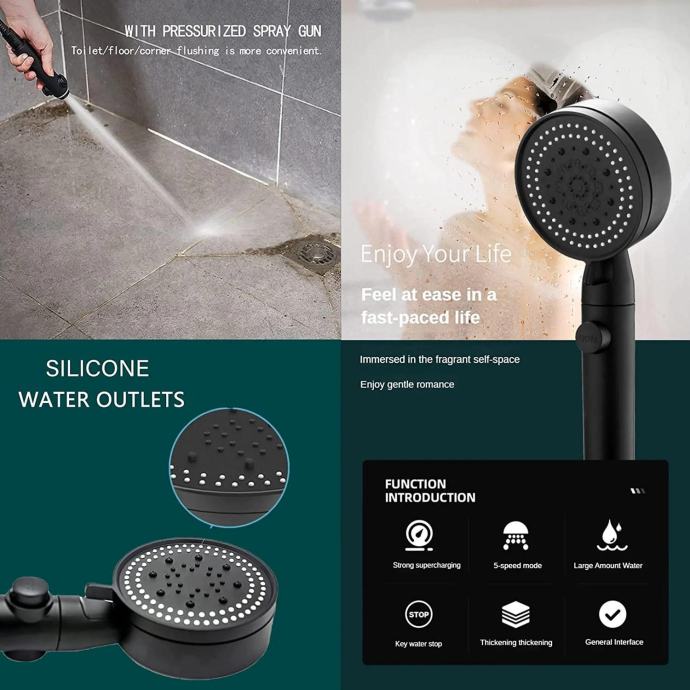 Zahvaljujoč svojim 5 funkcijam, ta tuš ročka omogoča prilagodljivo in priljubljeno prho glede na vaše želje. Izbirate lahko med različnimi načini prhanja, vključno z masažo, dežjem, mešano funkcijo in še več. S tem boste lahko ustvarili prilagojeno prho, ki bo zadovoljila vaše potrebe in vam omogočila sproščujočo izkušnjo.