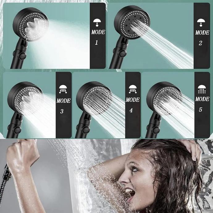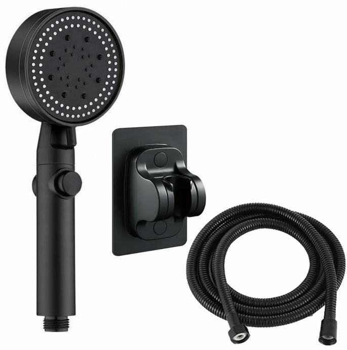 Ponujamo vam vrhunsko tuš ročko EKO inox črne barve z 5 funkcijami, skupaj s cevjo dolžine 150 cm in nosilcem, ki bo vašo vsakodnevno prho spremenila v pravo razvajanje. Ta tuš ročka je izdelana iz visokokakovostnega inox materiala, ki zagotavlja trajnost, odpornost proti koroziji in dolgo življenjsko dobo.Zahvaljujoč svojim 5 funkcijam, ta tuš ročka omogoča prilagodljivo in priljubljeno prho glede na vaše želje. Izbirate lahko med različnimi načini prhanja, vključno z masažo, dežjem, mešano funkcijo in še več. S tem boste lahko ustvarili prilagojeno prho, ki bo zadovoljila vaše potrebe in vam omogočila sproščujočo izkušnjo.Tuš ročka EKO inox črna 5 funkcij je enostavna za namestitev in se popolnoma prilega standardnim tuš cevm. Cev dolžine 150 cm vam omogoča večjo gibljivost in udobje med prhanjem. Nosilec pa zagotavlja stabilno pritrditev tuš ročke na steno, kar vam omogoča prilagodljivost glede višine in kotov prhanja.Poleg svoje funkcionalnosti in estetskega dizajna, ta tuš ročka tudi prispeva k varovanju okolja. Izdelana je iz materialov, ki so prijazni do okolja in omogočajo varčevanje z vodo, ne da bi pri tem žrtvovali užitek prhanja. S tem boste lahko prispevali k ohranjanju naravnih virov in zmanjšanju vašega ogljičnega odtisa.Naročite svojo tuš ročko EKO inox črno 5 funkcij + cev 150cm in nosilec danes in izkusite razliko v vaši vsakodnevni prhi. Z našim visokokakovostnim izdelkom boste dosegli udobje, funkcionalnost in trajnost, ki jih pričakujete od vrhunske tuš ročke.Črna tuš glava. Zasnovan za vgradnjo v standardno tuš cev. Slušalka ima funkcijo izbire načina tuširanja (5) in funkcijo STOP, ki ustavi tok. Vgrajeni ventilator poveča moč prhe brez povečane porabe vode. V kompletu je namenska tuš cev dolžine 150 cm in stensko držalo, pritrjeno s samolepilnim trakom.Črna tuš glava + cevIzdelek je namenjen vgradnji v standardno tuš cev.Opremljen s kar 5 različnimi funkcijami prhe in funkcijo STOP.Vgrajeni ventilator poveča moč prhe brez povečane porabe vode.Material: nerjaveče jeklo + plastika (ABS)Dolžina slušalke (skupna): 24,5 cmPremer cedila: 9 cmPremer niti: 2 cmDolžina cevi: 150 cmNavoj: 1/2”Dimenzije ročaja: 12 cm x 8 cmČrna barva