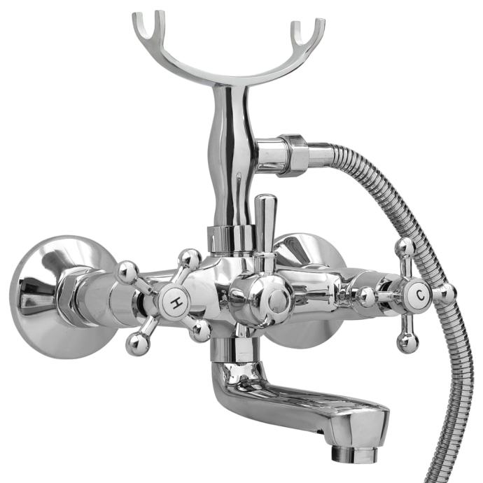 Odlična pipa za kad je nepogrešljiva v vsaki kopalnici. Naša mešalna armatura za kad z 2 ročajema in kromiranim finišem je popolna izbira za umivanje rok ali tuširanje. Naša pipa za kad s kromirano površino je izdelana v retro stilu. Trdna medeninasta konstrukcija mešalni armaturi za kad zagotavlja vzdržljivost in stabilnost. 2 ročaja iz cinkove zlitine sta priročna in lahko zadovoljita vaše zahteve. Naš komplet pipe z ročnim tušem boste zlahka namestili in sestavili.