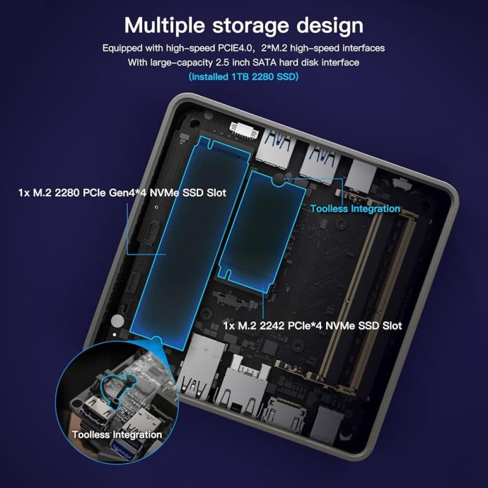 1x M.2 2242 PCIe Gen4x4 NVMe - prosto za nadgradnjo