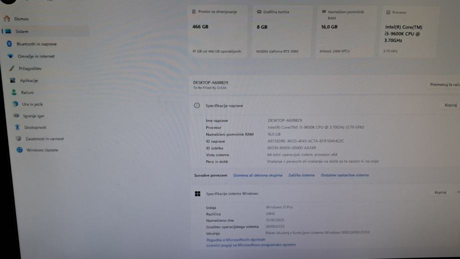 Prodam dobro ohranjen ter zelo malo rabljen Računalnik i5-9600K, 3,70GHz z ohišjem RGB.